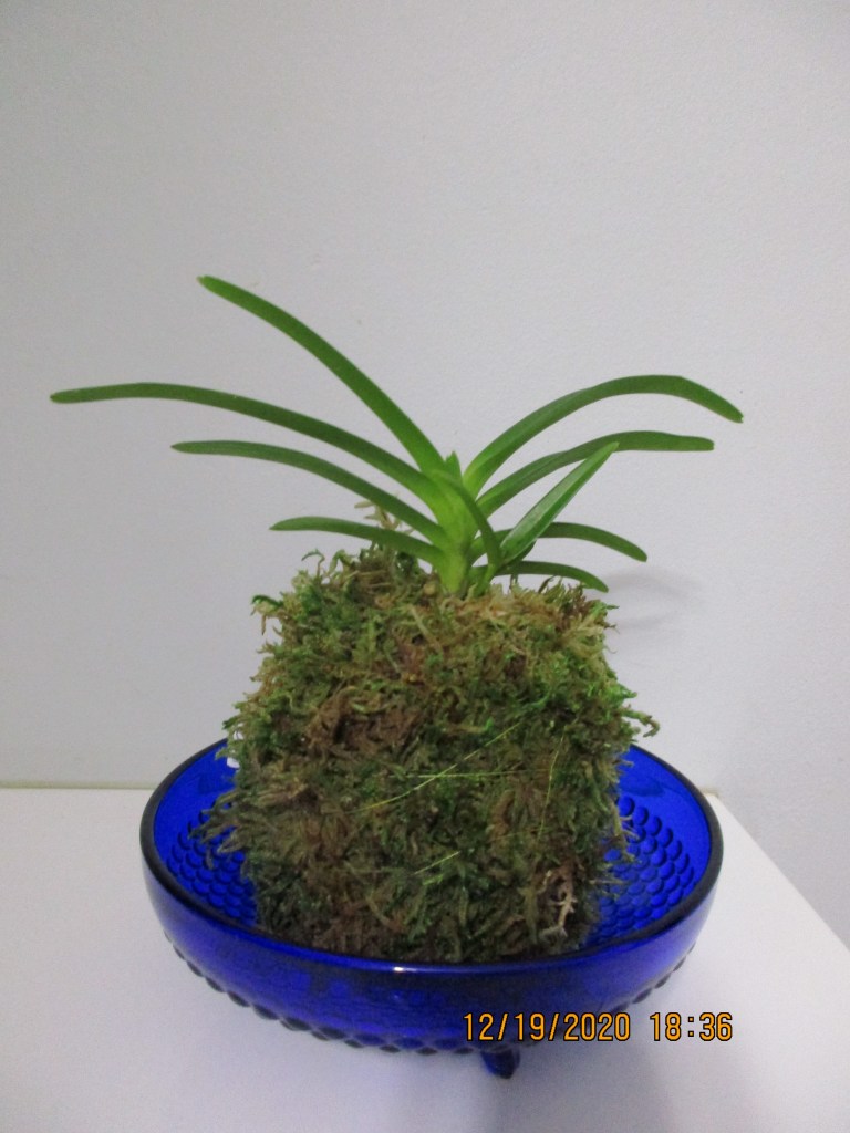 Kokedama presentation of Neostylis Lou Sneary (Anne-Marie Blancquaert)-display only